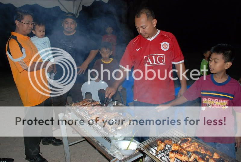 Setelah puas mandi, malam pula ada acara BBQ, kami berkumpul lebih kurang jam 8 malam. Firdaus dan Shidi jadi tukang bakar dan selepas itu beberapa ahli lain pun turut serta. Memang meriah. Ayam, sotong, ikan dan sosej (kegemaran semua) menjadi magsa malam ini.